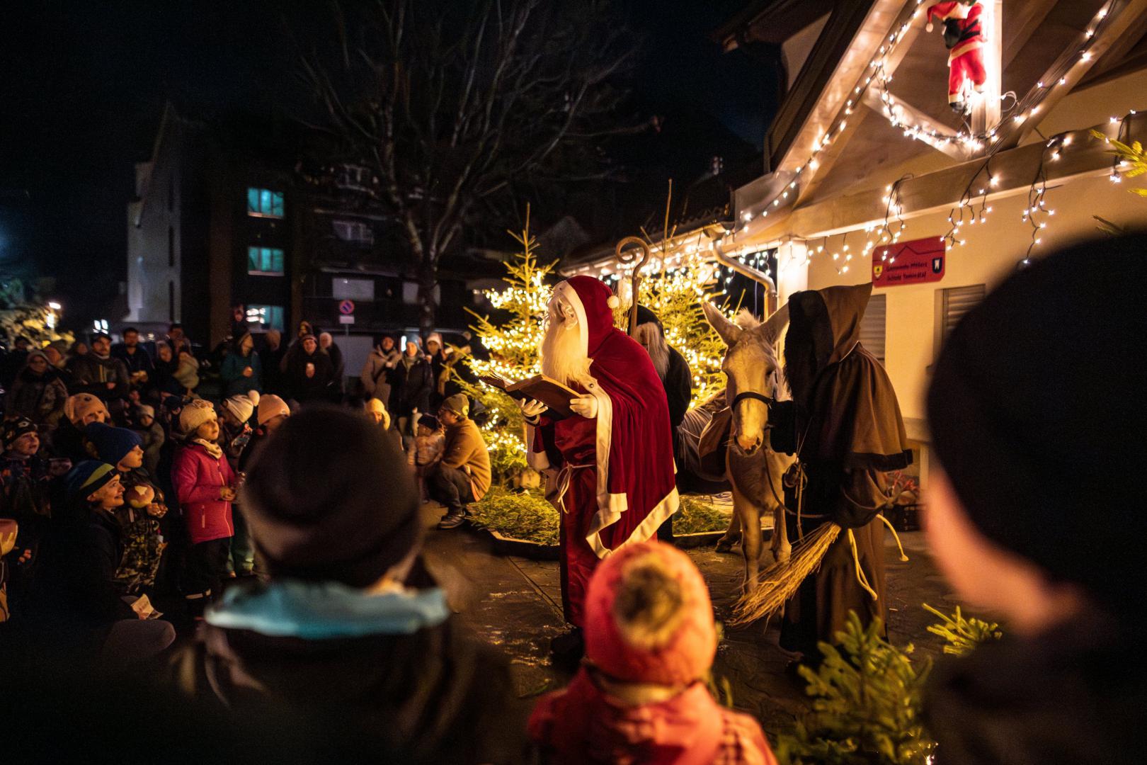 Mit selbstgeschnitzten Räbenliechtli zogen die Kinder der Schule Valens-Vasön voller Vorfreude durchs Dorf und holten den Samichlaus und seine Eseli am Waldrand ab. Zusammen ging es zum Schulhaus, wo die Kinder ihre Sprüchli vortrugen und freudig ihre Säckli erhielten.